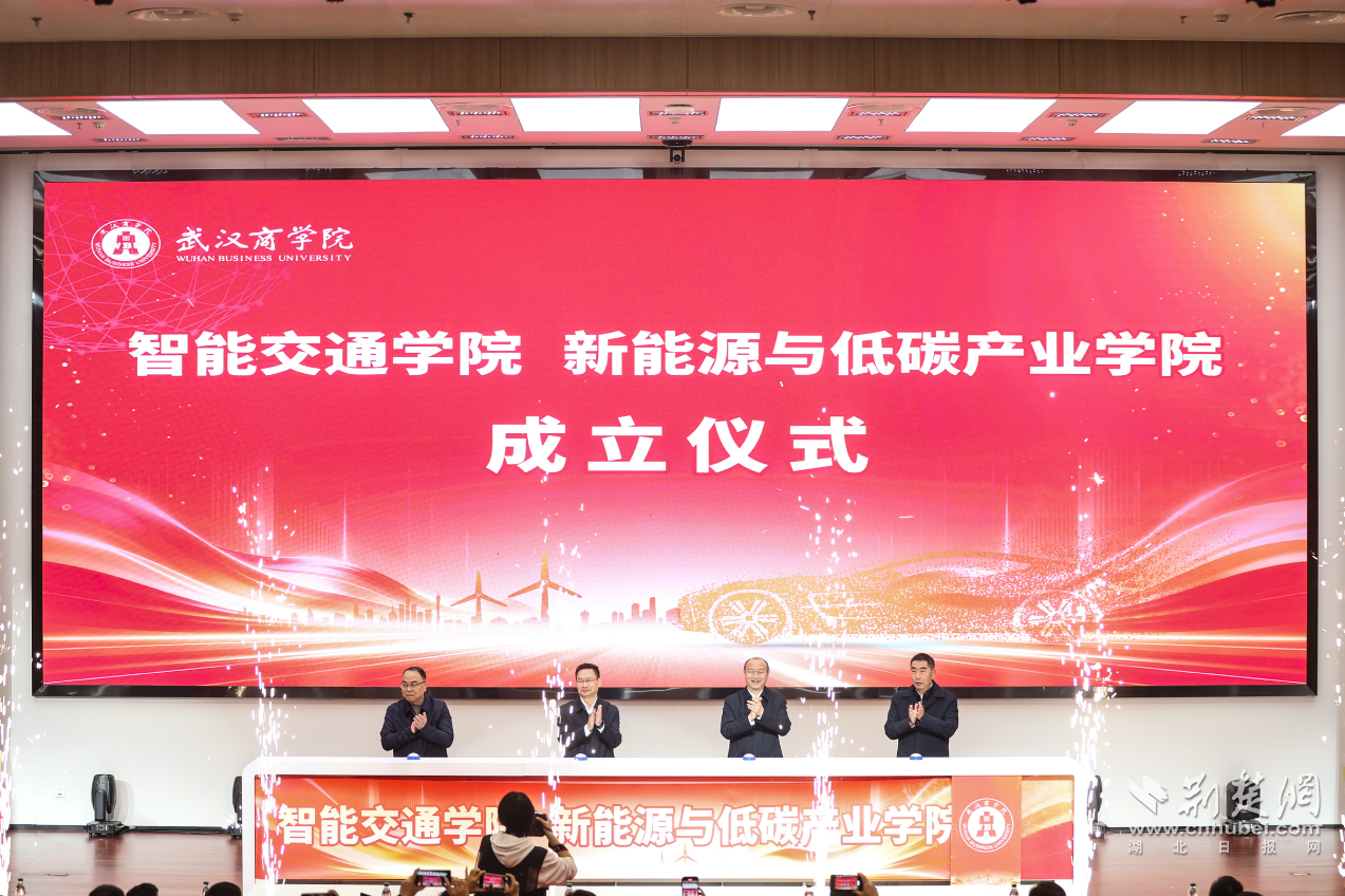 荆楚网(湖北日报)(记者 齐一轩 通讯员 陆乐亚 杨亚丽)为优化专业结构,加强品格建设,12月18日,武汉商学院智能交通学院、新能源与低碳产业学院正式挂牌。武汉市交通运输局党组书记邹云、武汉市发展和改革委员会副主任张文波、武汉商学院党委书记孟武康、校长彭宇共同宣布新学院成立。两校现场签署多项校企合作协议,共同开启政政商校一体化发展新篇章。